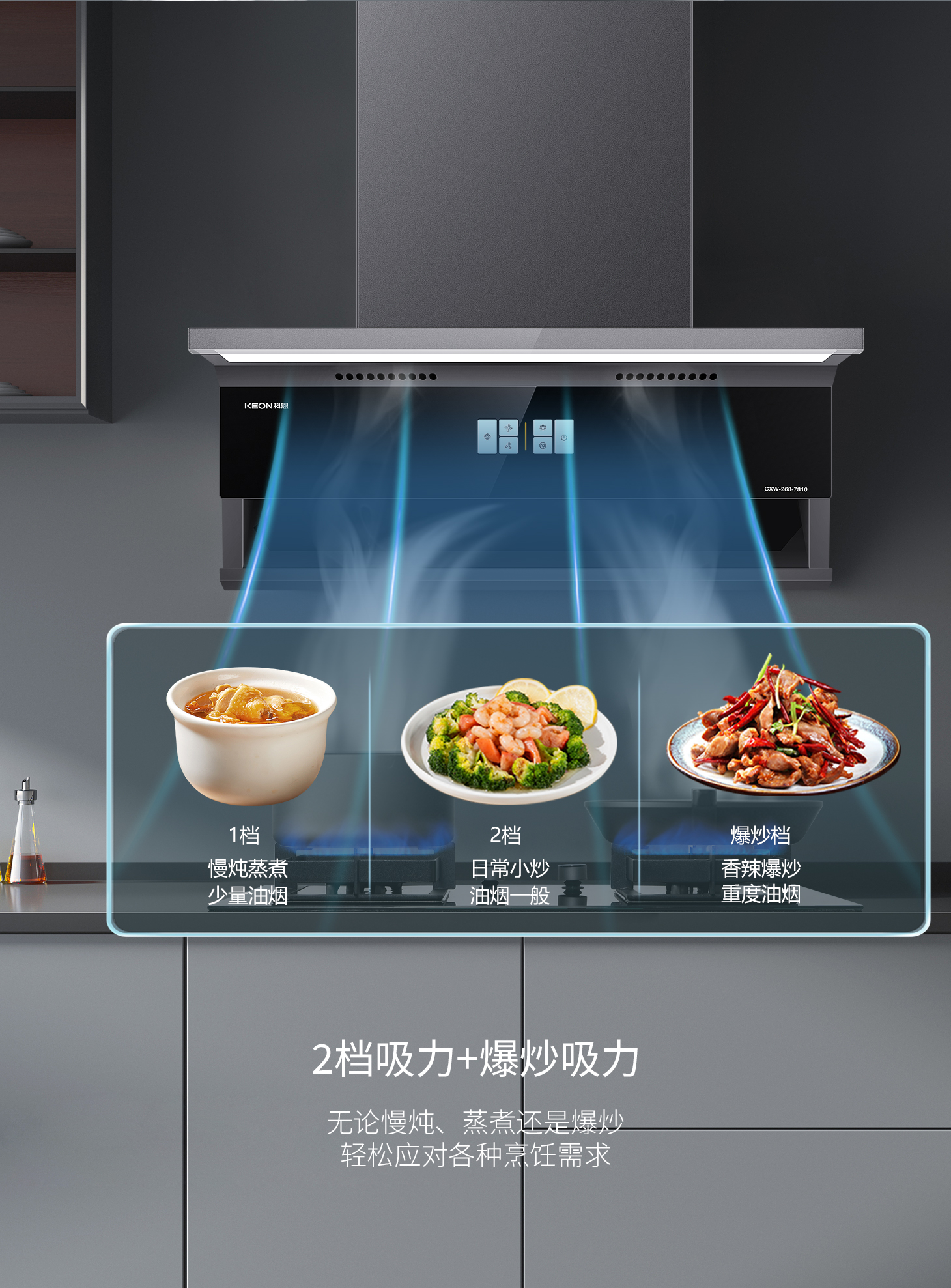 凈煙神速 顏值擔(dān)當(dāng)。新年爆炒,油煙無(wú)蹤,3秒清場(chǎng),全域攏煙,1350Pa變頻風(fēng)壓,排煙順暢。2.5cm輕薄機(jī)身,冰川灰鑲邊,天鵝頸設(shè)計(jì),釋放開闊空間,揮手智控,凈煙不沾油污。易潔省心 健康相伴。特氟龍工藝,油污不粘。智旋清洗,吸力持久強(qiáng)勁。3分鐘延時(shí)關(guān)機(jī),余煙盡除,IP67全景天幕,護(hù)眼清晰,模塊化觸控,操作直觀簡(jiǎn)單,0.5立方大空間,翻炒不碰頭。